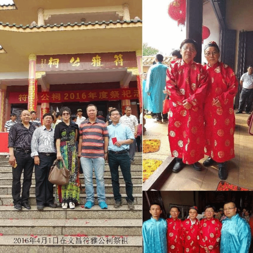 符之玮教授自1996年第一次返乡,已往返海南40多次。从1998年起,他几乎每年都会参加海南世界符氏宗亲总会活动,回到家乡祭祖增修族谱,并为新建祠堂、捐助学生读书等作出了贡献。2004-2008,被选举为新加坡符氏社社长;2018年,被海南世界符氏宗亲总会选为符氏族长。
