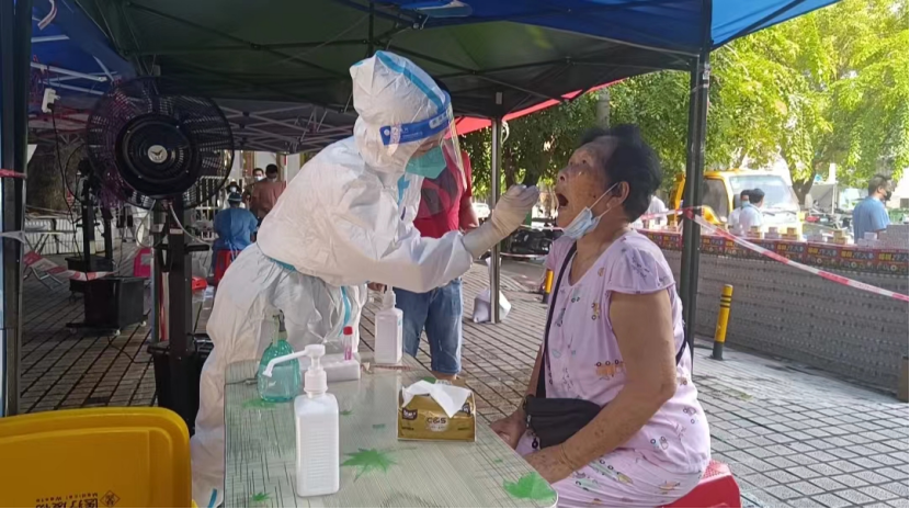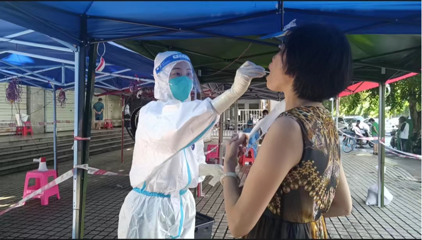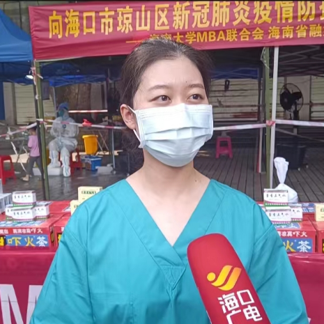 父母也是非常支持我来这边,他们其实也是很担心我的,也询问了我关于海口这边的情况,我说穿着防护服也比较热,我妈妈就说出出汗是更好的。